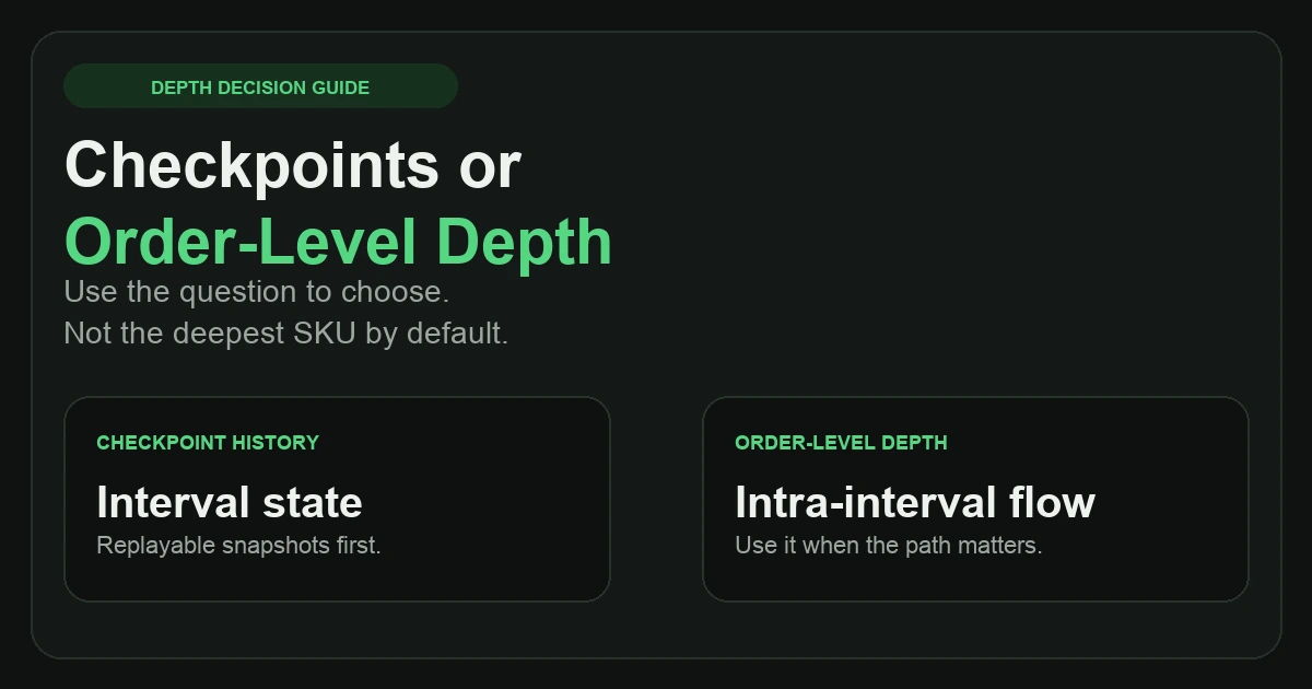 A question-first framework for deciding when checkpoint history is enough, when full L4 and order-level routes matter, and how to test the threshold on one Hyperliquid event window.